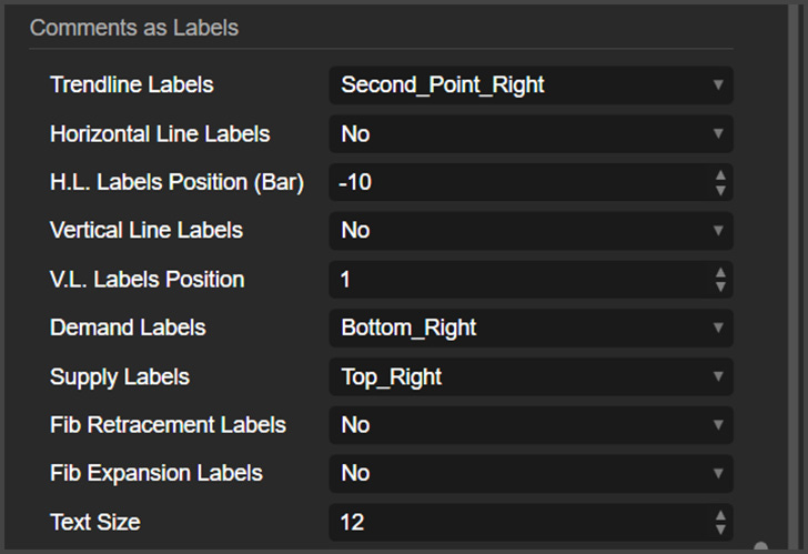 Fib Retracement Labels: Here, you can enable Fibonacci retracement labels.