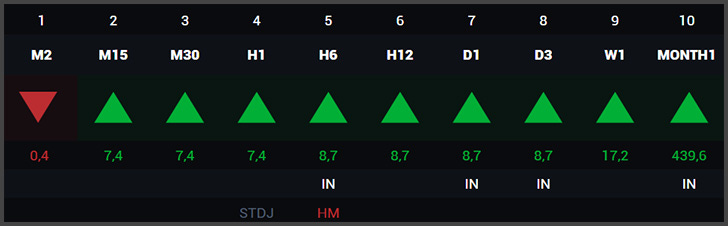 Third Line (the triangles): These triangles represent the direction the price is going on those timeframes.