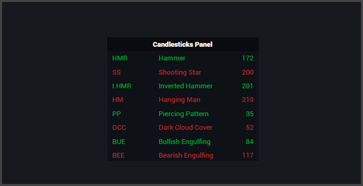 Panel Position: Here you can enable another panel that will be placed on your chart with all the enabled patterns, their abbreviation and full names, and the quantity of patters that have been detected on the chart.