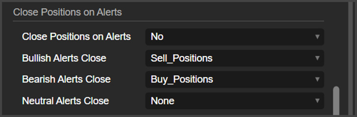 Close Positions on Alerts: This indicator can close positions when an alert is triggered, and here is where you can enable that feature.