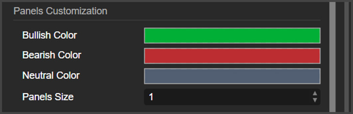Here, you can customize the colors and the size of the panels of this indicator.