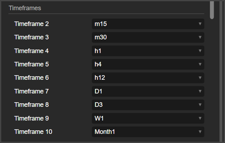 Number of Timeframes: Here, you can choose how many timeframes will be displayed on the Timeframes panel.