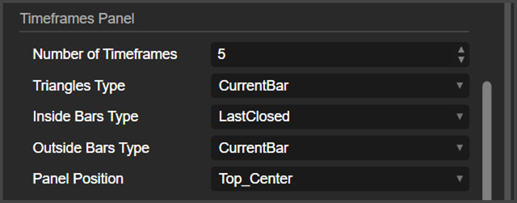 Panel Position: Here, you can choose where the Timeframes Panel will be positioned on your chart.