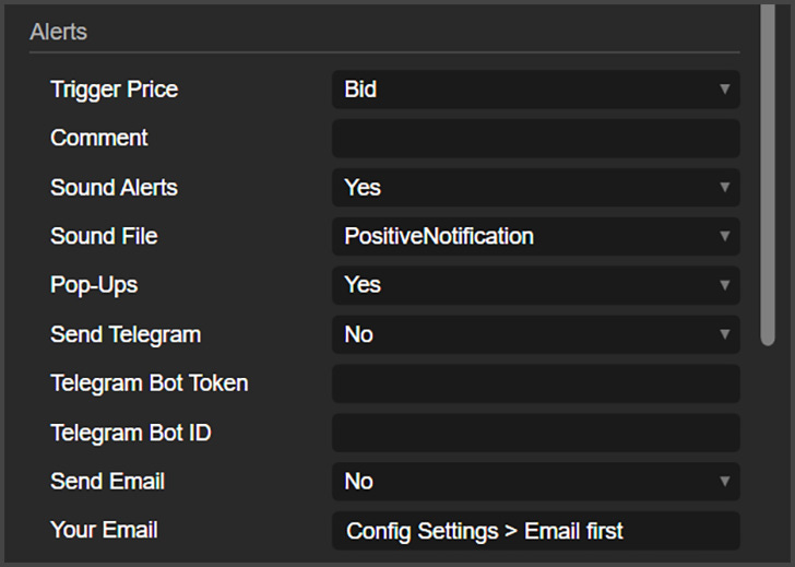 Trigger Price: Choose if you want the alerts to be triggered by the Bid or the Ask price.