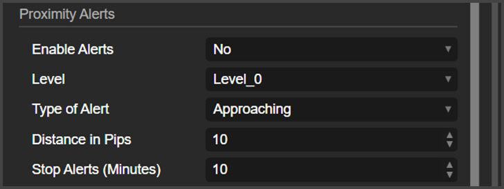 Enable Alerts: Here you can enable the proximity type alerts. These alerts will trigger when the price is approaching or distancing from a determined level chosen by you on the next parameter.