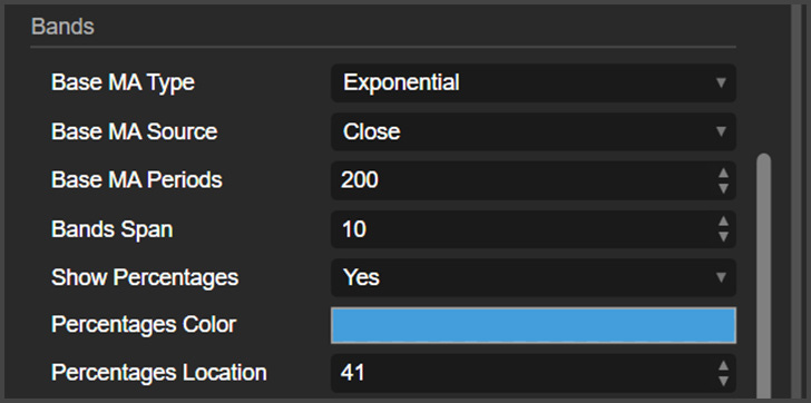 Base MA Type: Here you choose the base moving average type. This is where all the bands originates from.