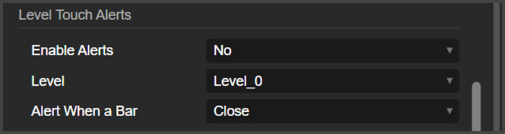 Alert When a Bar: Choose if you want the alerts to be triggered when a bar closes touching a level, or immediately when the price touches the level.