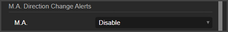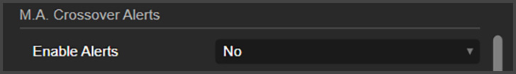 Here you can choose if you want to receive alerts for when the moving averages change direction. You can set it to M.A. 1, M.A. 2 or both.