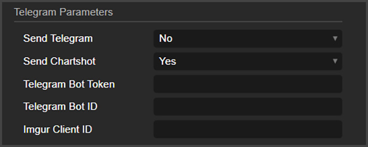 Send Chartshot: Enable or disable screenshots of the chart to be sent in Telegram alerts. The chart must be active for this to work. Minimizing the cTrader window does not affect this feature, but changing charts on the cTrader platform does. If a screenshot is not possible to be taken, then only the text message will be sent.