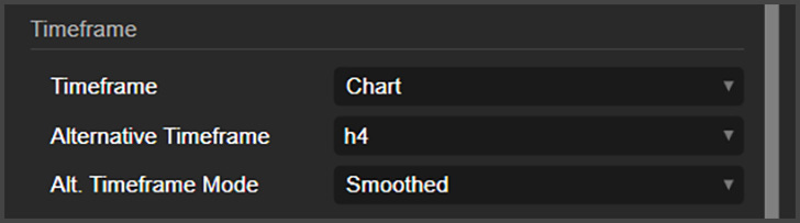 Alternative Timeframe: If you choose to use an alternative timeframe, here is where you will set which timeframe you want to use. It must always be bigger than the chart's timeframe.