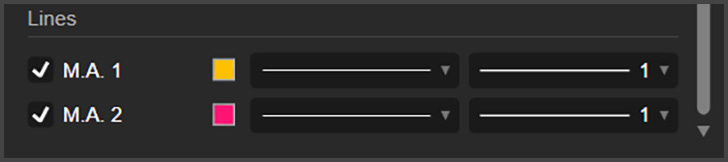 Show M.A. Labels: This will show the timeframe, the period size, the type of moving average and it’s name on the chart.