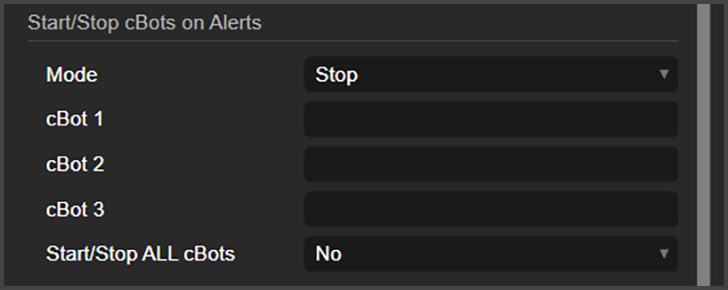 Start/Stop ALL cBots: If you have more than three cBots on a chart, and want to manage all of them, enable this option and don’t worry about their names.